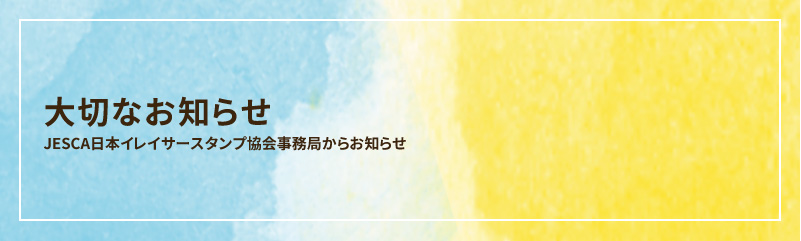 また、すでに「JESCA消しゴムはんこインストラクター資格」ならびに「JESCA消しゴムはんこクリエイター資格」を取得された方へのサポートは、今後も継続してまいります。今後とも、消しゴムはんこ文化のさらなる発展と、皆さまの創作活動を応援してまいります。